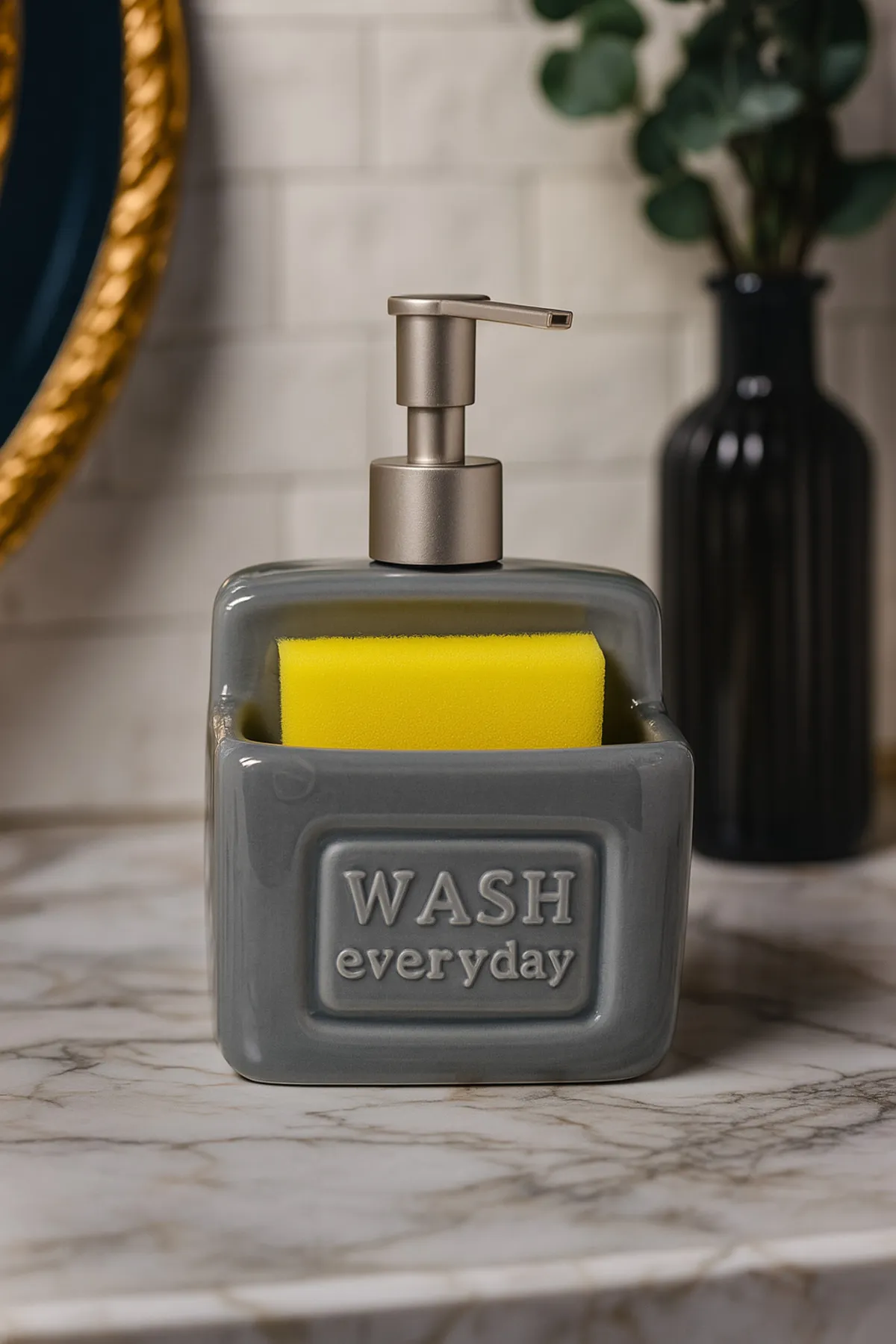 2 li Sıvı Sabunluk Seti Altın Renk Detaylı, Süngerlikli ve Stantlı