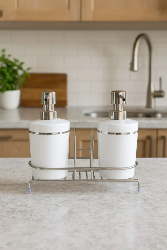 ₺799,00Stantlı 2’li Sıvı Sabunluk Seti Süngerlikli – Gümüş Renk Detaylı