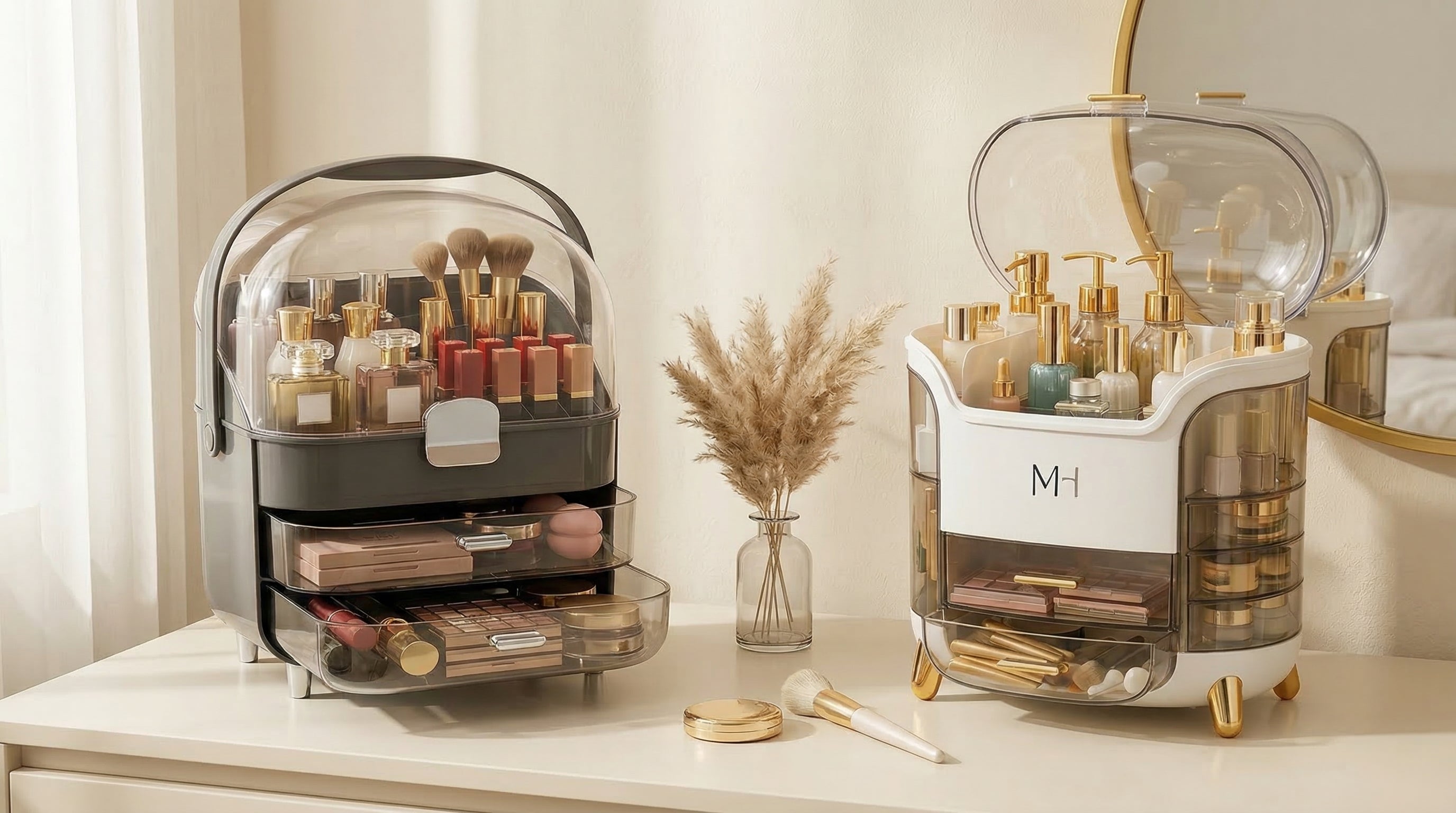 - Şeffaf Akrilik Makyaj Organizeri Makyaj malzemelerinizi, fırçalarınızı ve kozmetik ürünlerinizi düzenli bir şekilde saklamanızı sağlayan şeffaf akrilik organizer, şıklığı ve kullanışlı tasarımıyla öne çıkıyor.